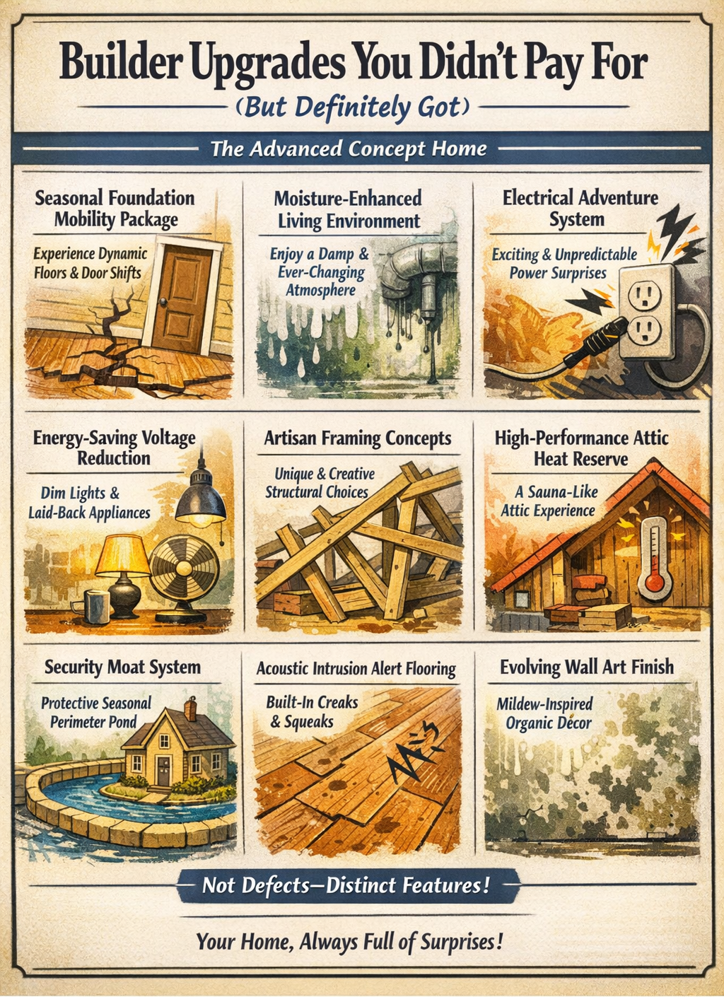 Today’s homes are delivered with a full suite of forward-thinking, builder-included enhancements designed to create a more interactive, evolving living experience, and these aren’t defects—they’re features that simply haven’t been properly marketed yet. What you received wasn’t a flawed house; it was an advanced concept home that continues to develop long after closing.
